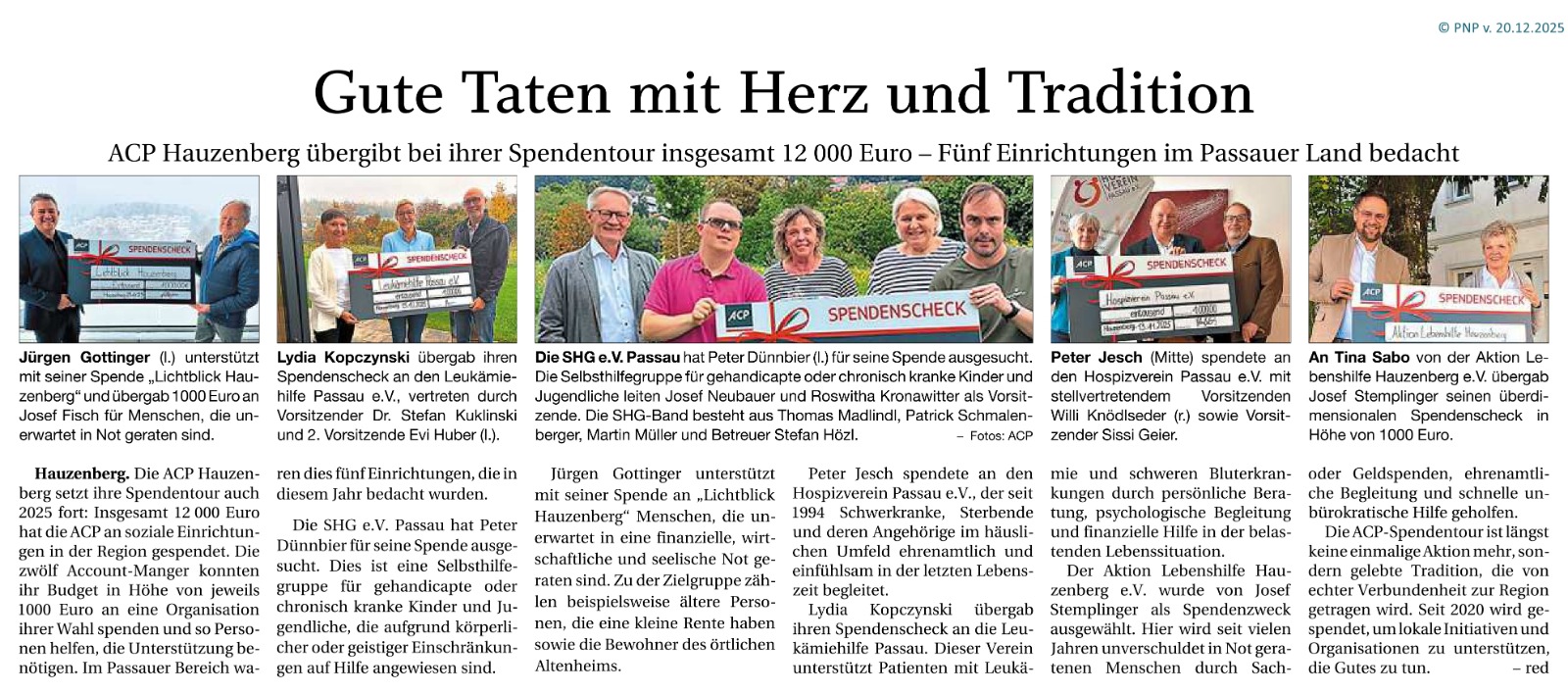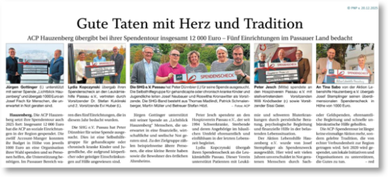 Statt Weihnachtsgeschenken für ihre Kunden wurde für einen „guten Zweck“ gespendet - Nutznießer war diesmal u. a. die Leukämiehilfe Passau.