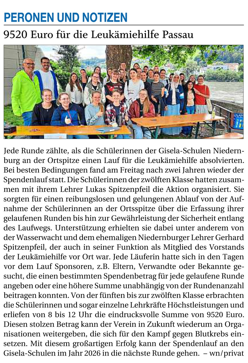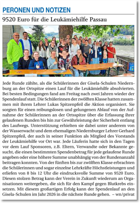 4. Spendenlauf am Gisela-Gymnasium Niedernburg