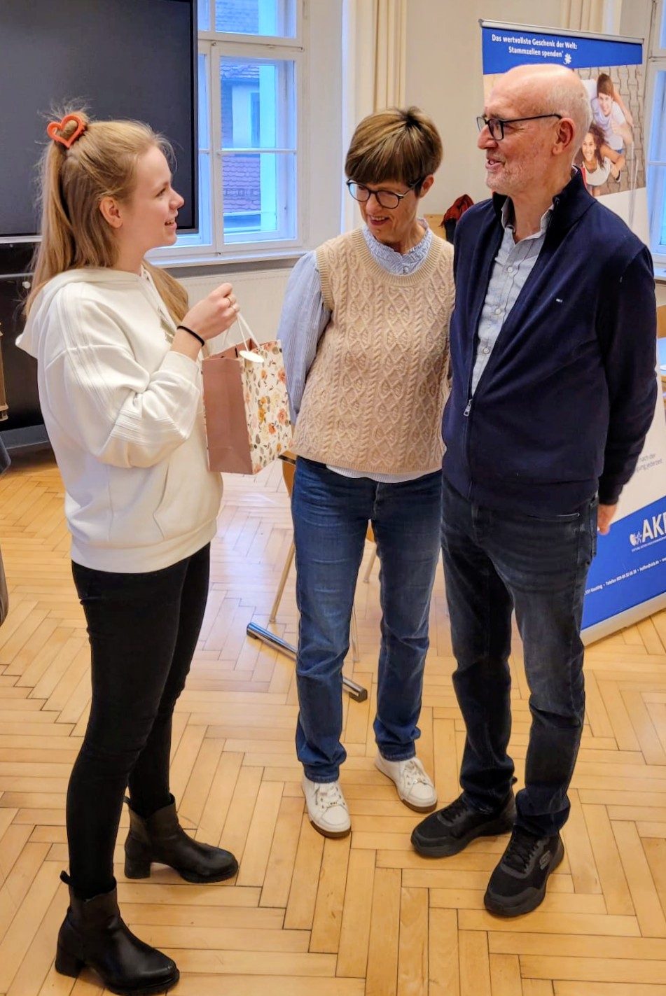 Am letzten Schultag vor Weihnachten fand im Gisela-Gymnasium eine Typisierungsaktion statt. Es konnten insgesamt 39 Typisierungen in der 13. Klasse durchgeführt werden. Außerdem übergaben die Schülerinnen den Erlös eines Pauseverkaufs - 340 € - als Spende für die Leukämie Hilfe Passau e.V. - an Annette und Gerhard Spitzenpfeil.