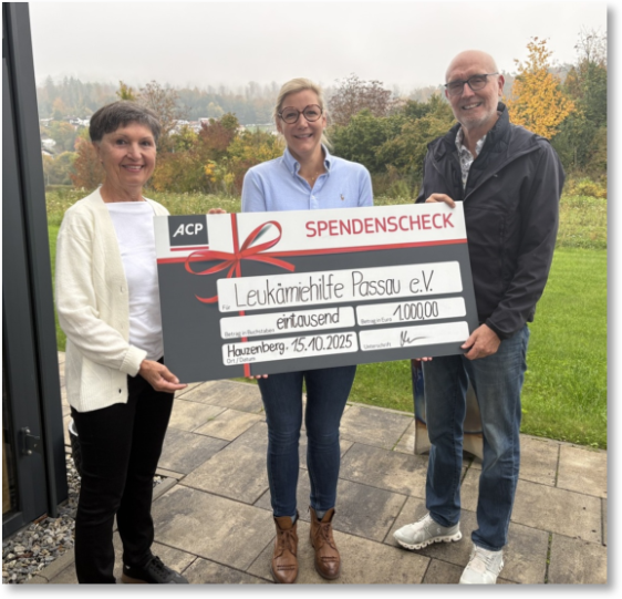 Spendenübergabe über 1000 Euro bei der ACP IT Solutions AG in Hauzenberg