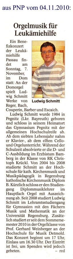 LUDWIG SCHMITT AN DER PASSAUER DOMORGEL BENEFIZKONZERT AM 07.11.10 - 17:00 UHR