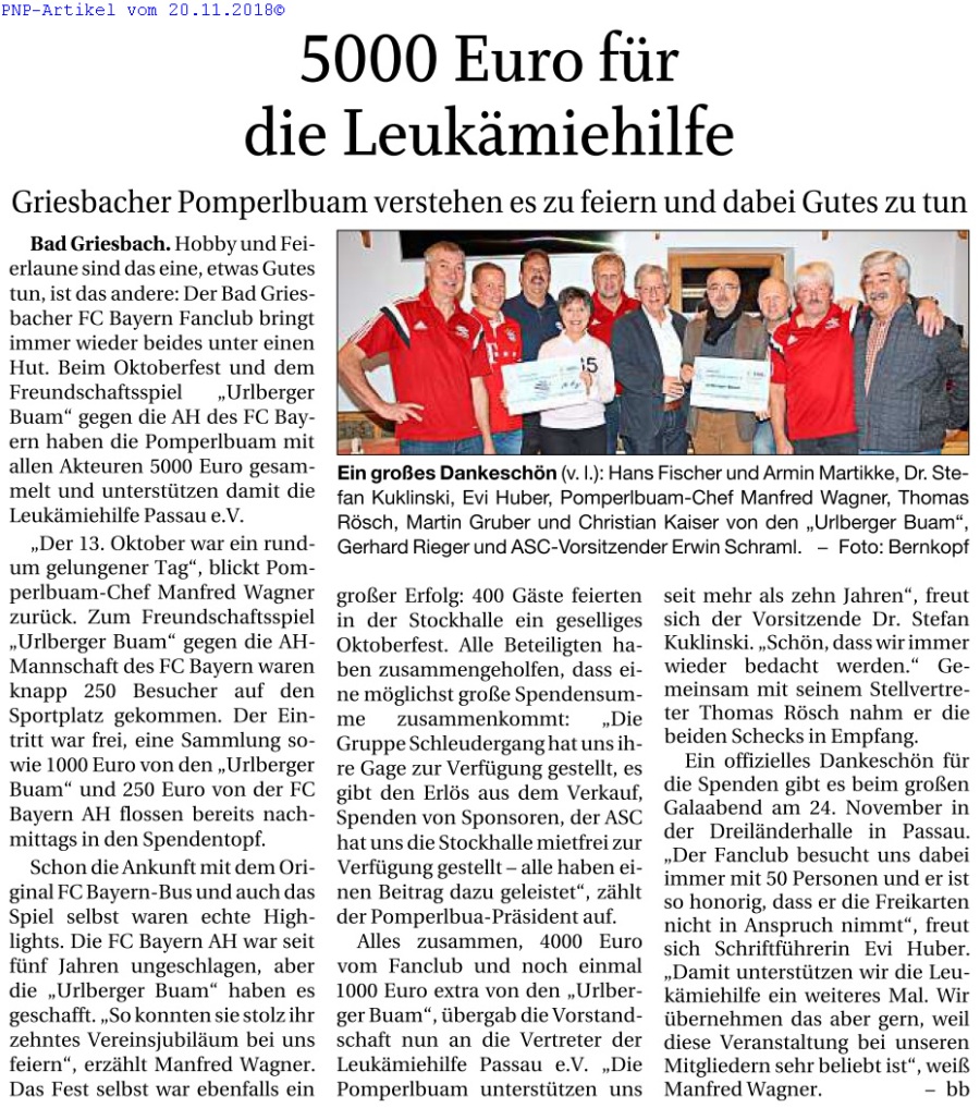 Bad Griesbacher „Pomperlbuam“ planen Benefizveranstaltung Bei einem Fanclub dreht sich alles um die Lieblingsmannschaft - könnte man meinen. Die Bad Griesbacher „Pomperlbuam“ haben sich nicht nur dem Fußball und dem FC Bayern verschrieben, sie finden auch das ganze Jahr über Gelegenheit, etwas für den guten Zweck zu tun.